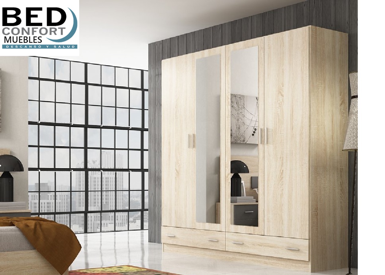 Armarios de dos puertas con 2 cajones, de tres puertas con dos cajones, de cuatro puertas con un cajón a cada lado,diferentes acabados,y con posibilidad de maletero.