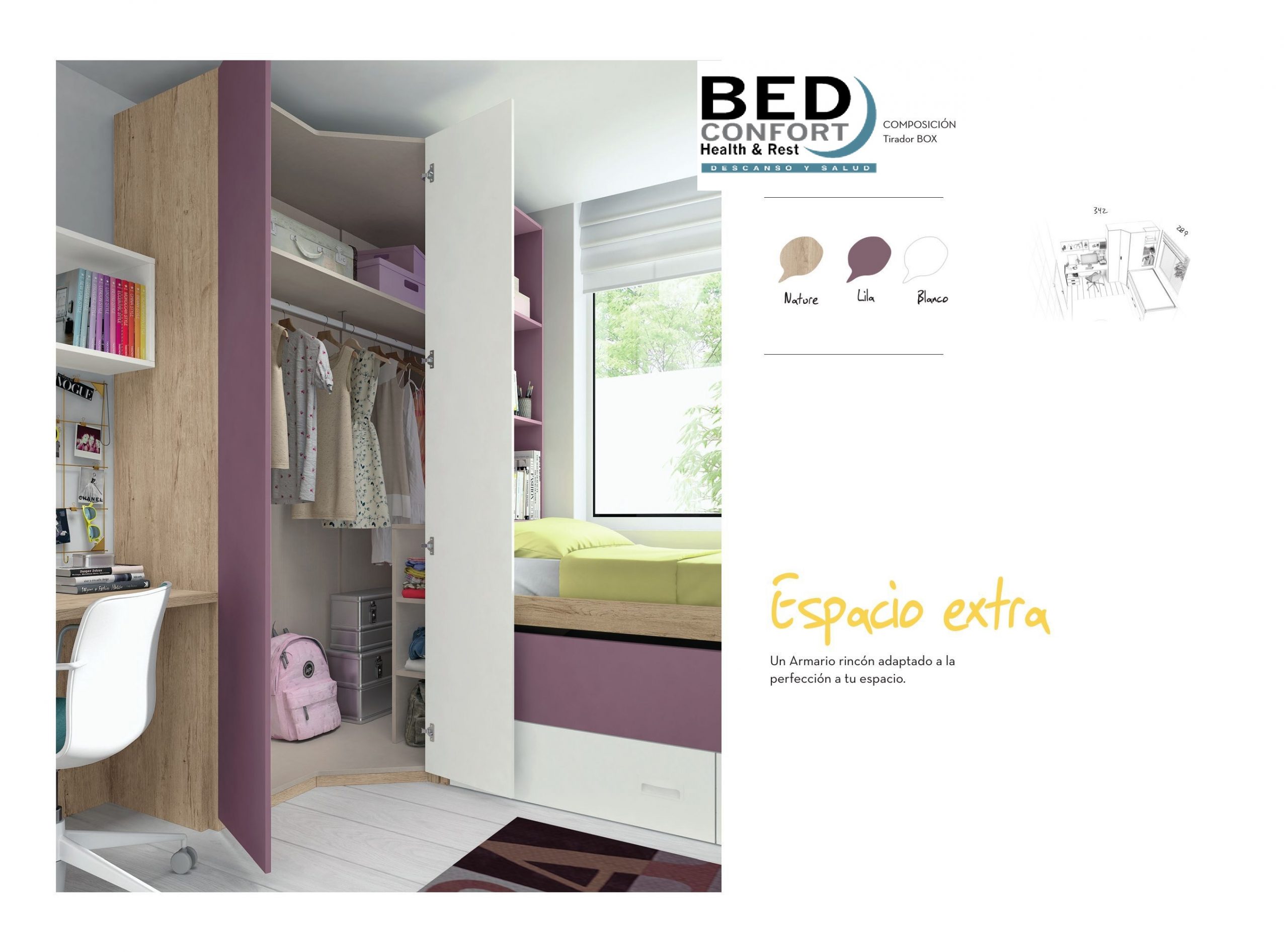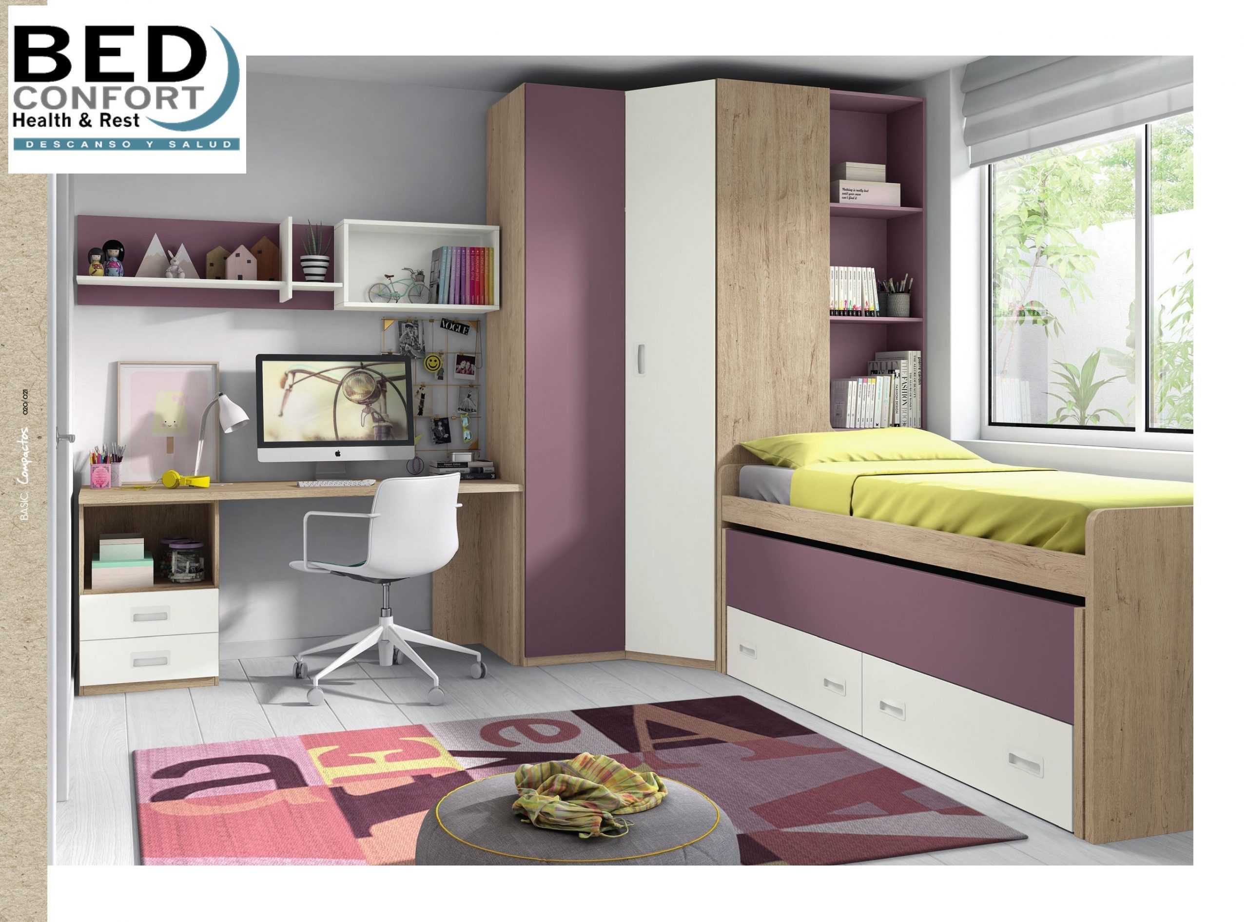 Dormitorio juvenil con dos camas de  90,bajo 2 cajones.