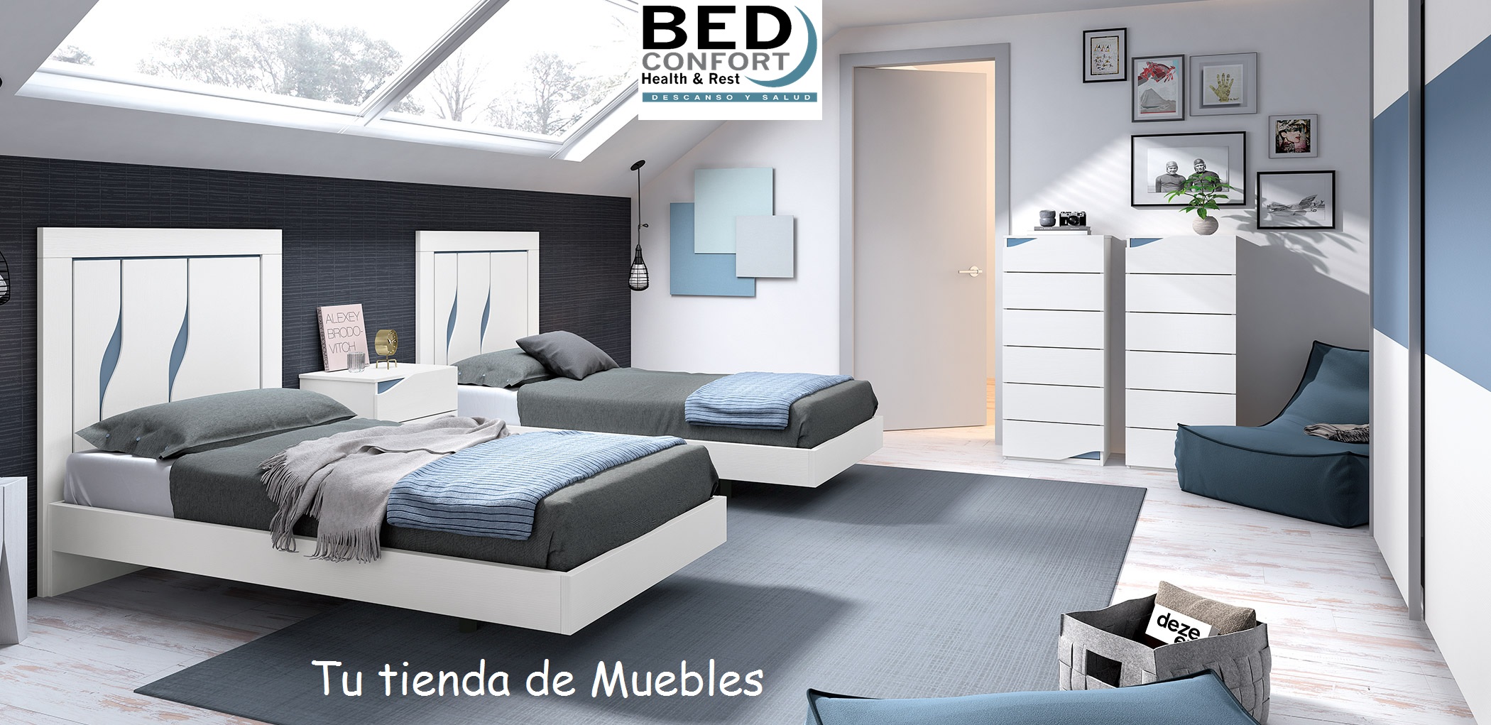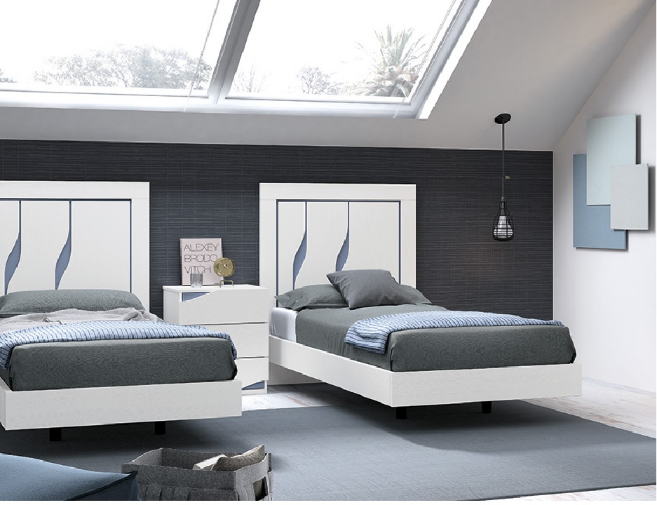 Dormitorio con dos camas ,varios colores y combinaciones.