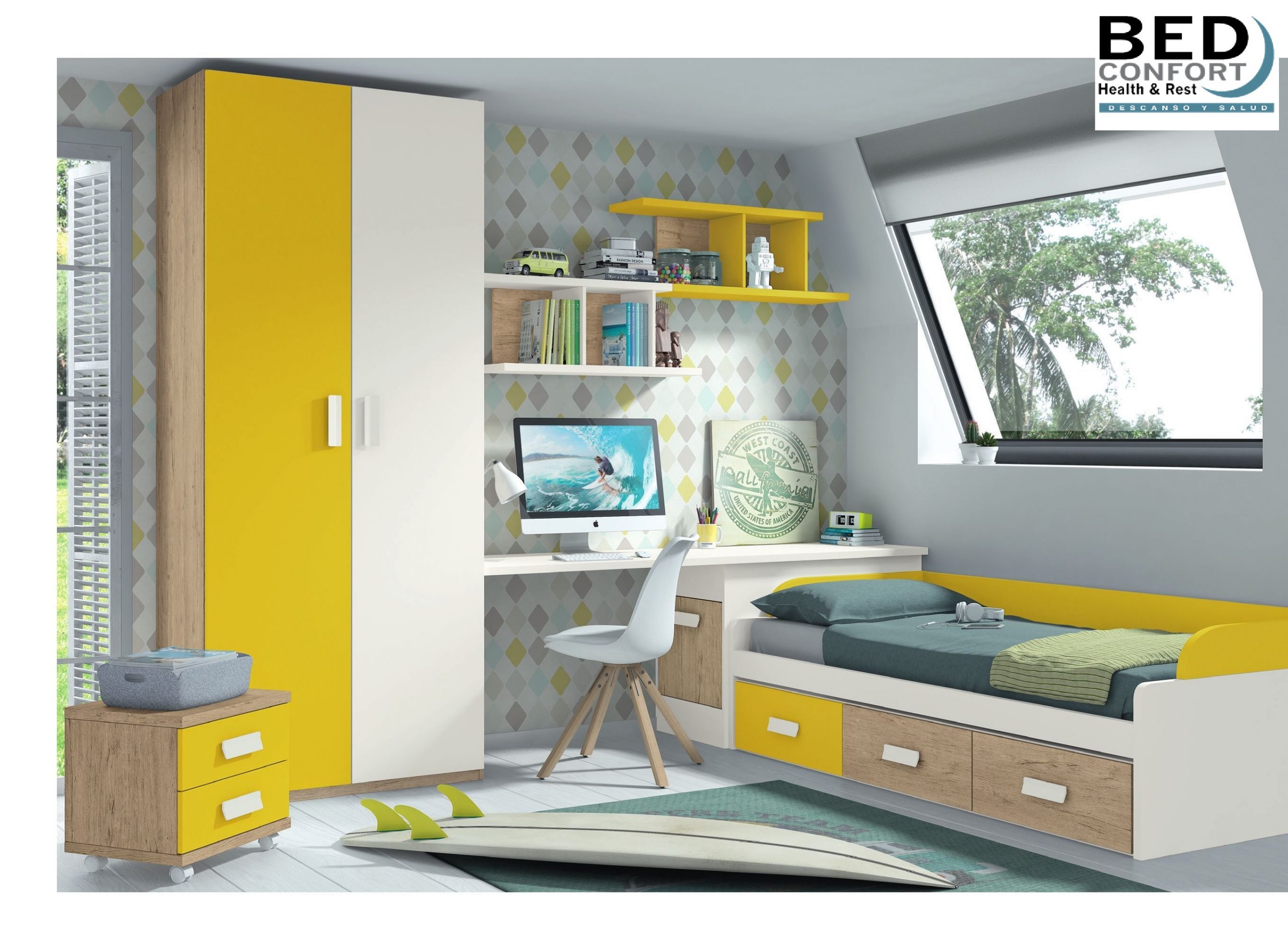 Dormitorio cama 90 y bajo 3 cajones.