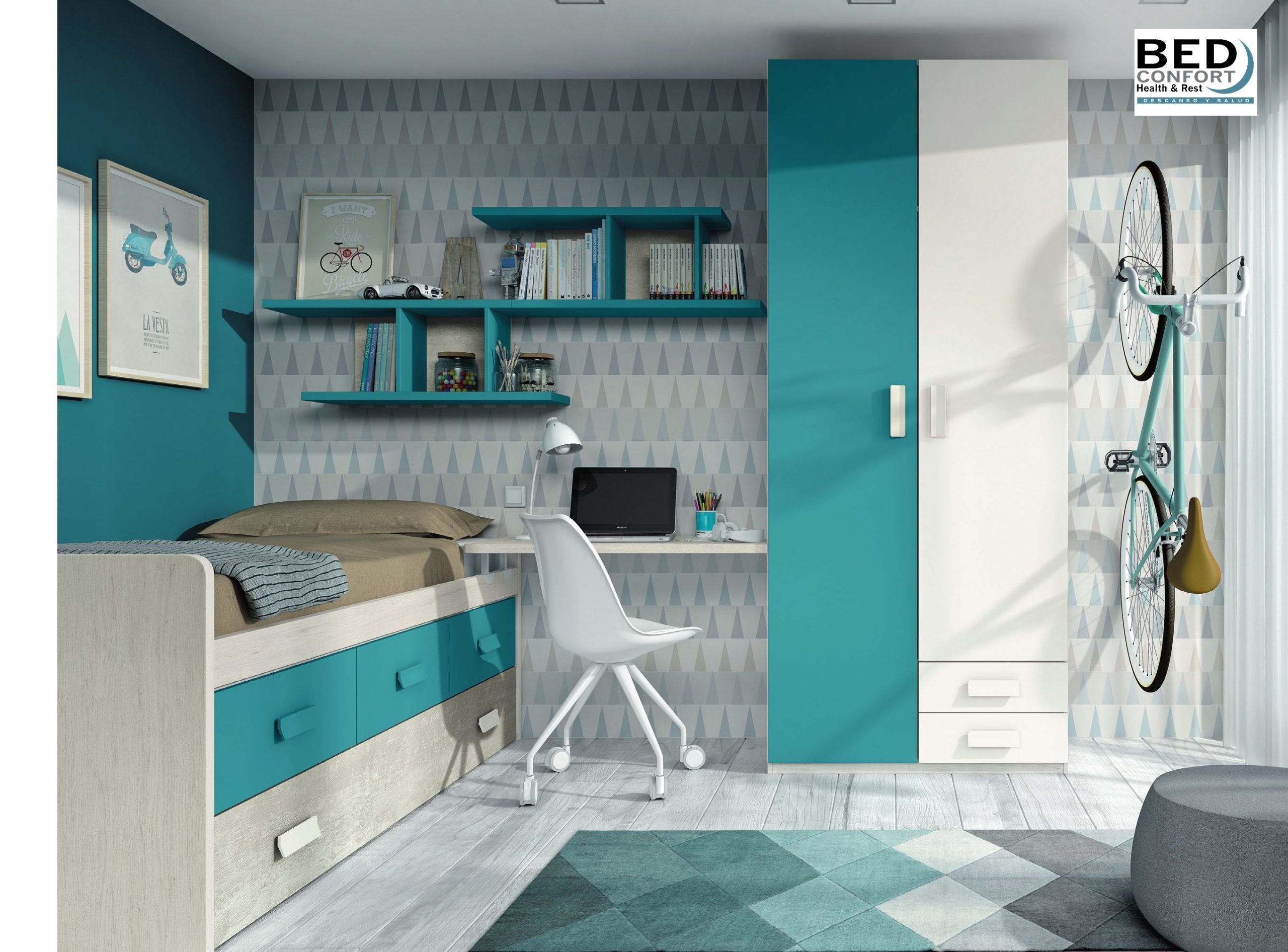 Dormitorio Juvenil con dos camas,mesa estudio y armario 2 puertas