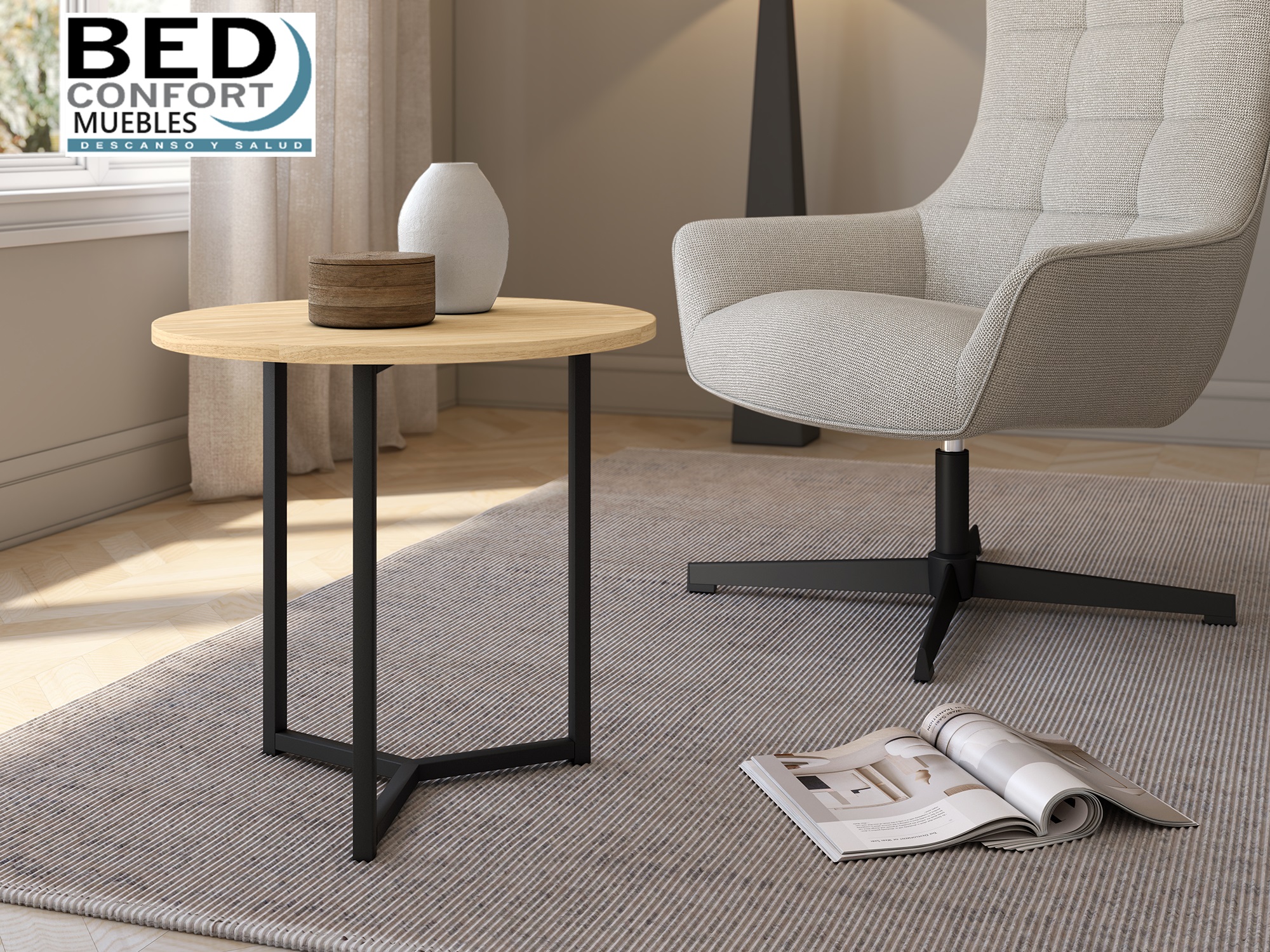 Mesa auxiliar de 50 diametro,varios acabados , estructura negra.