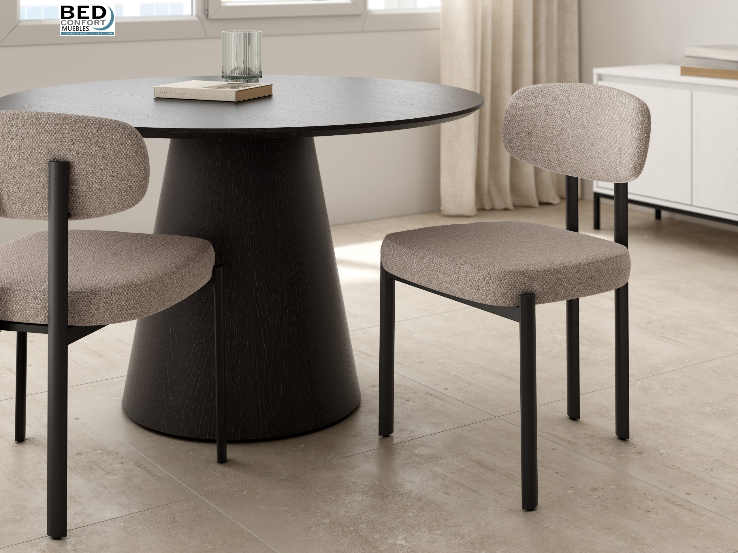 Silla con respaldo y asiento tapizado,Patas metálicas negras.