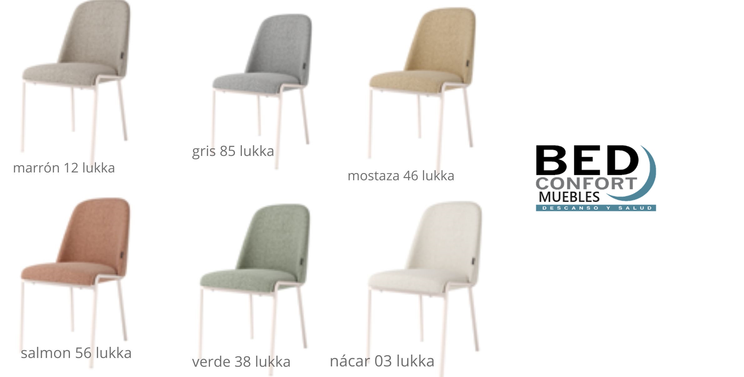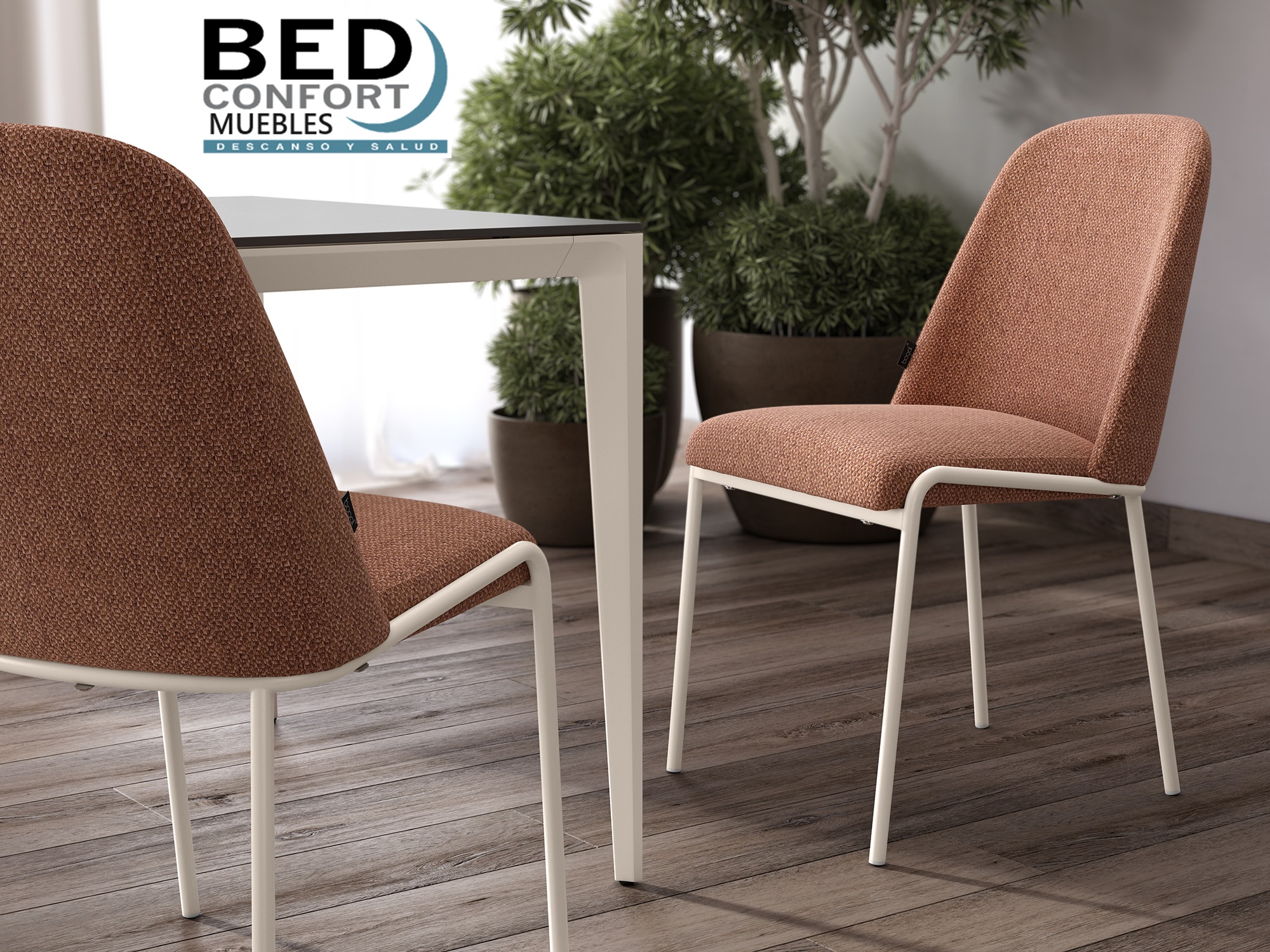 Silla con asiento y respaldo tapizado,patas metálicas marfil.