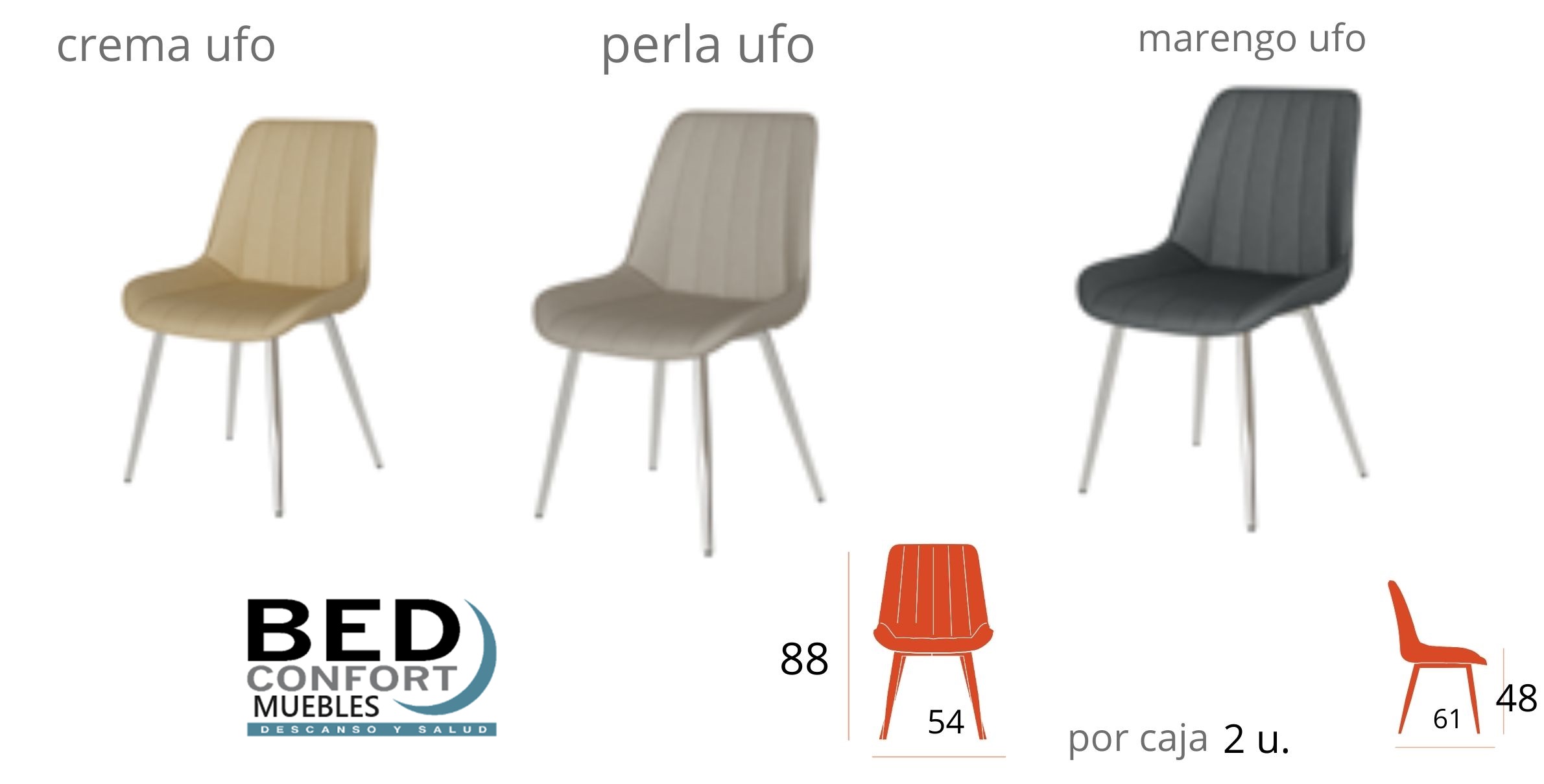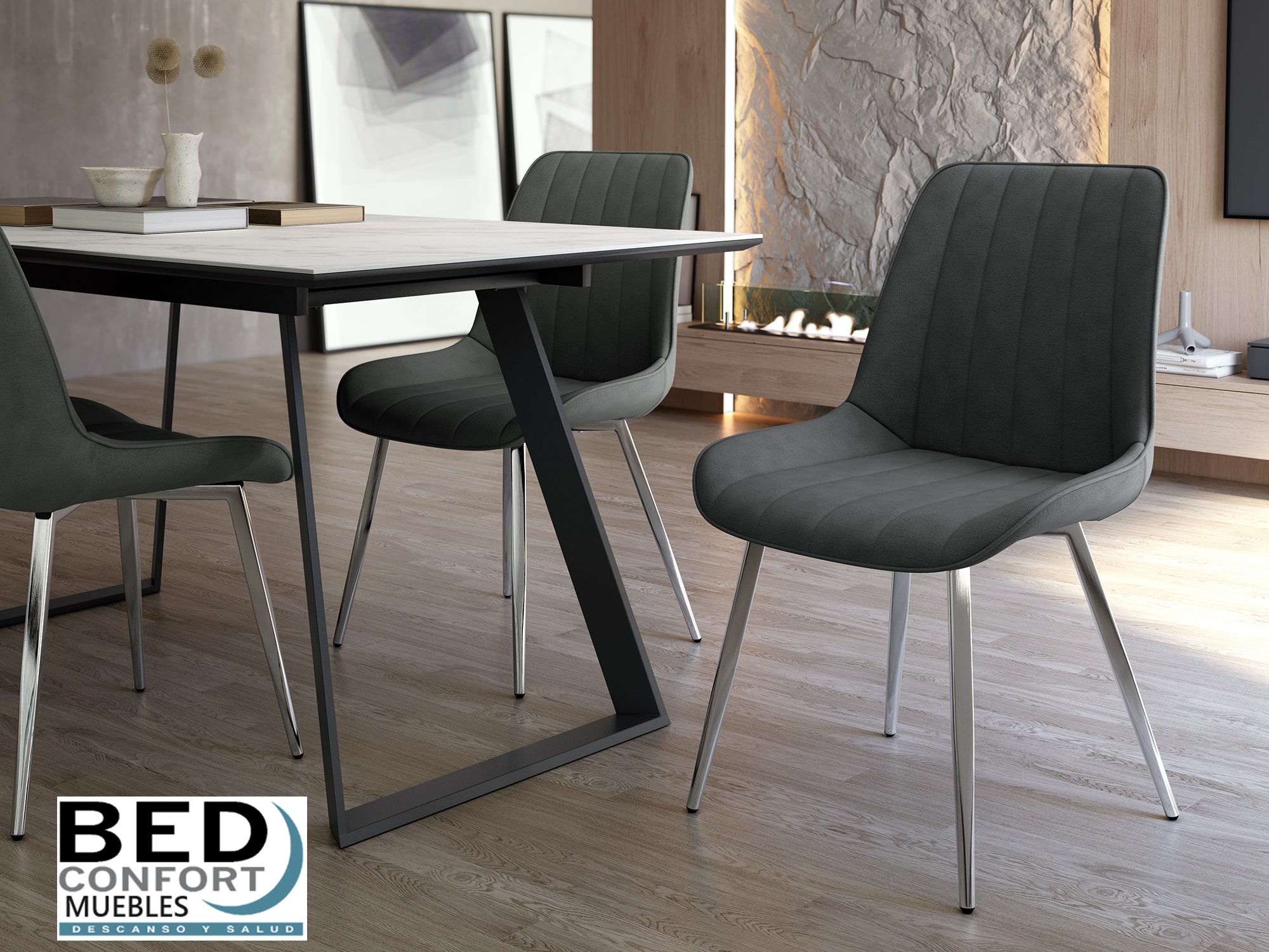 Silla con respaldo y asiento tapizado,patas metálicas cromadas.