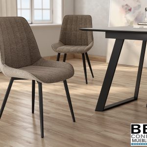 Silla con asiento y respaldo tapizado,Patas metálicas a juego.