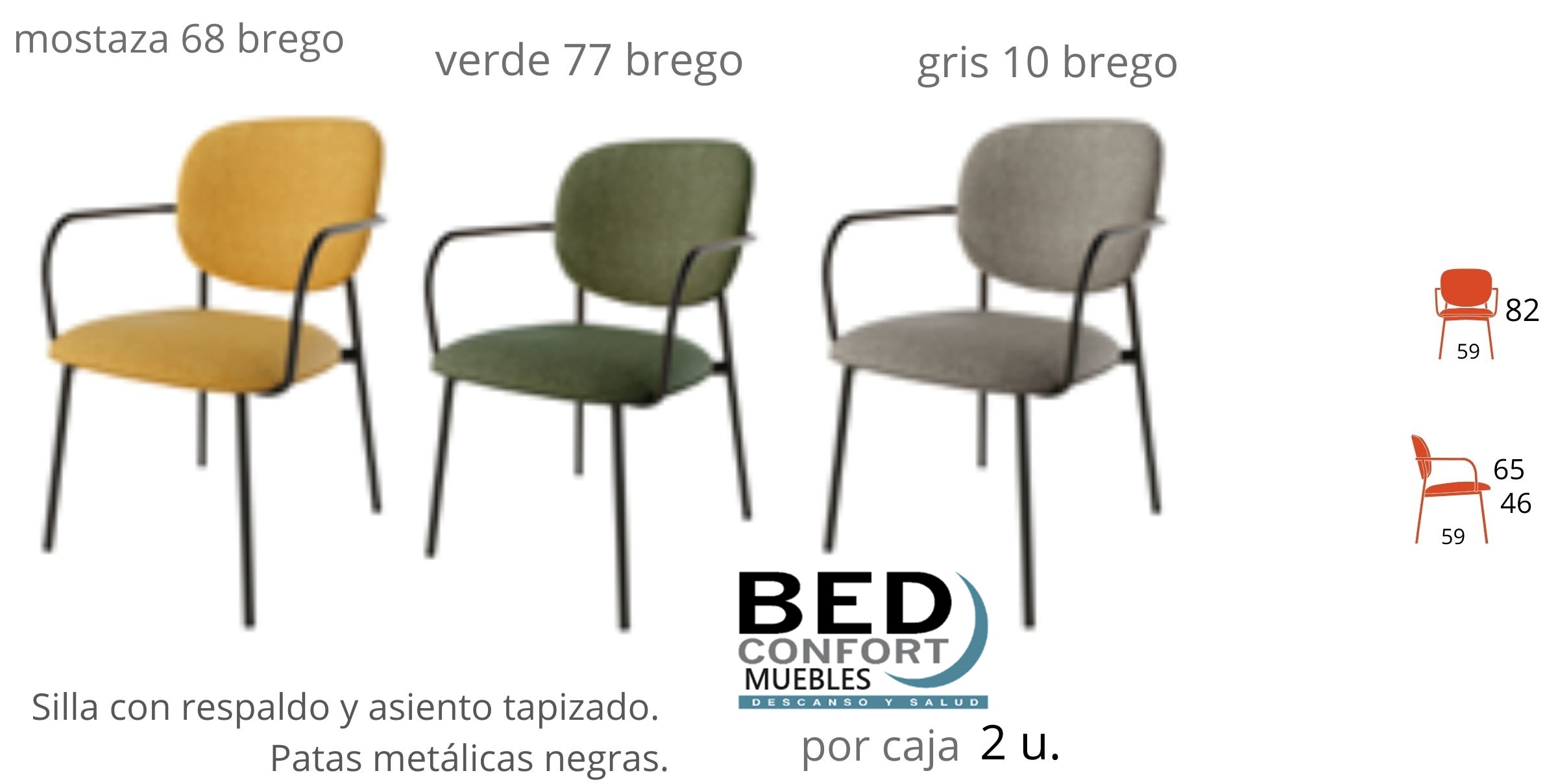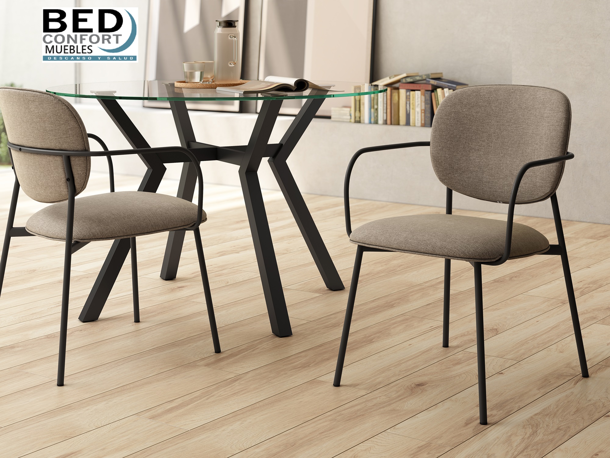 Silla con asiento y respaldo tapizado,patas metálicas negras.