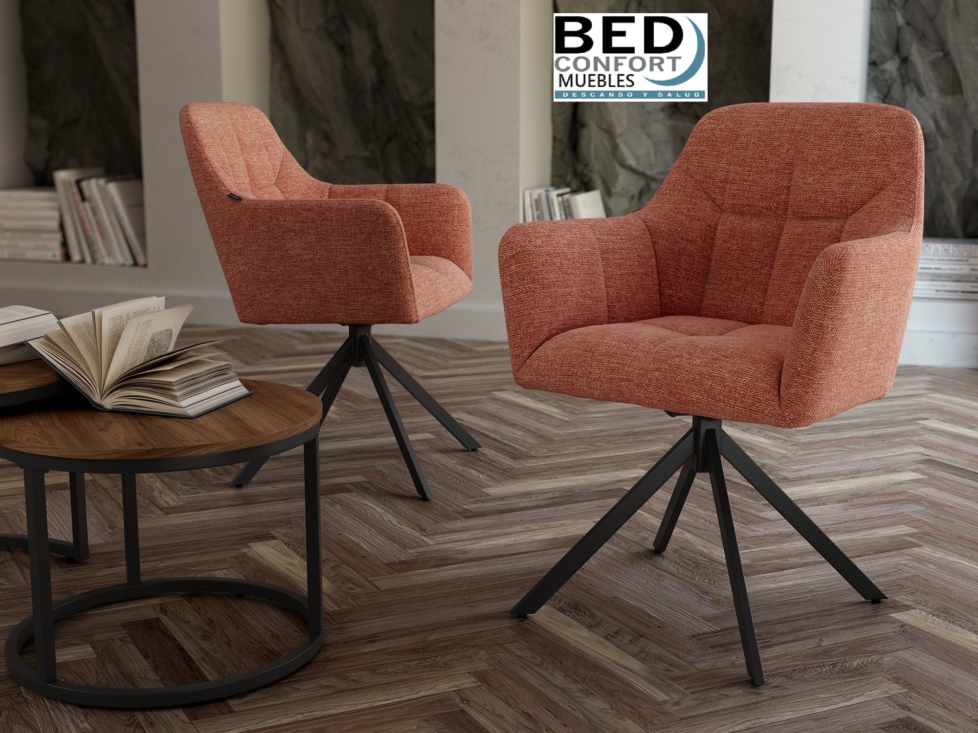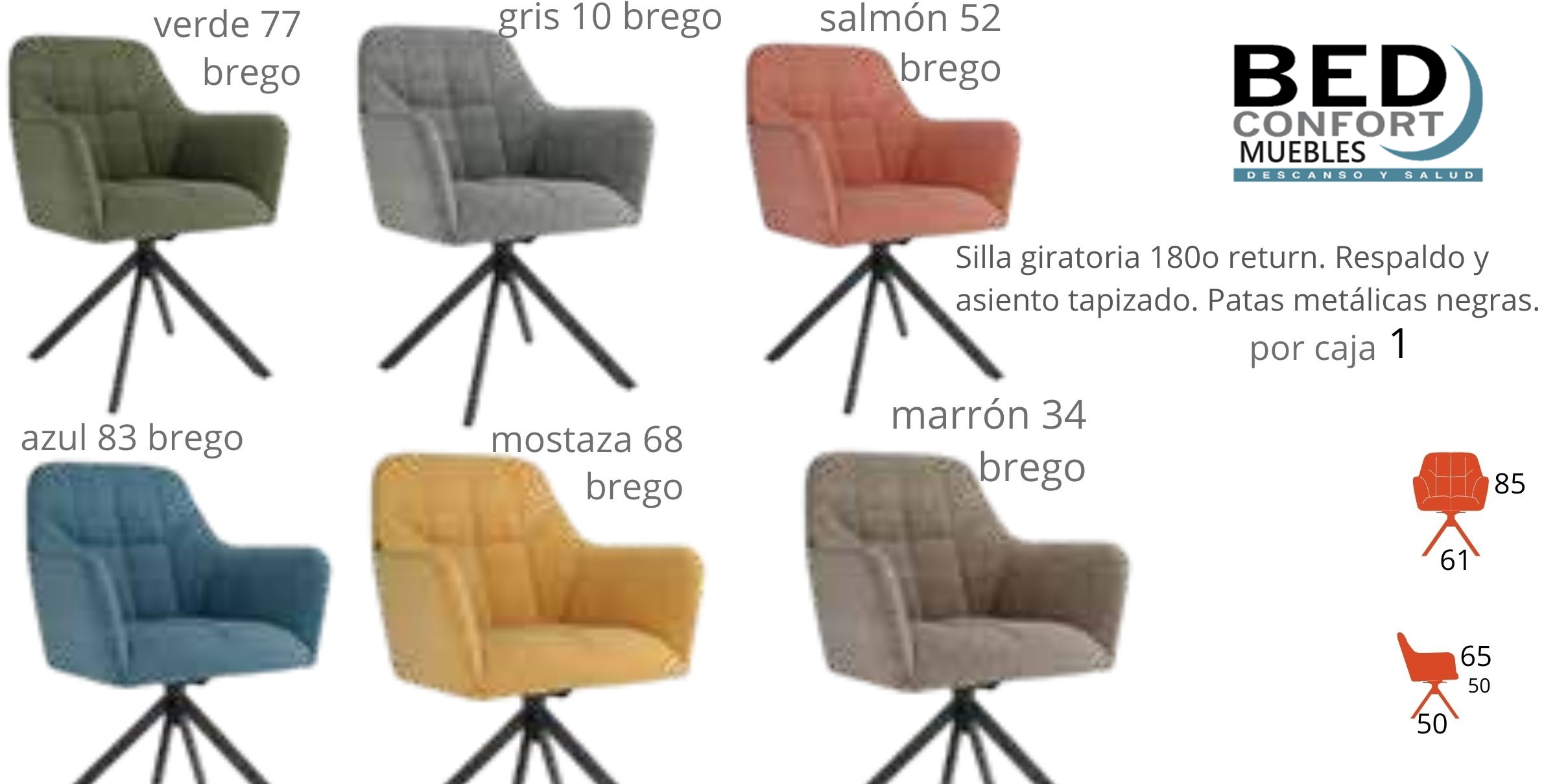 Silla giratoria 180º return,respaldo y asiento tapizado,patas metálicas negras.