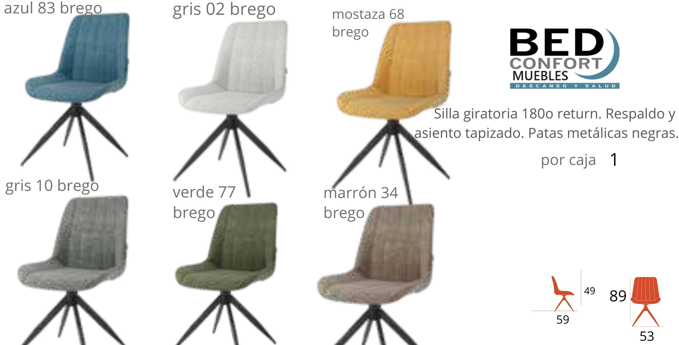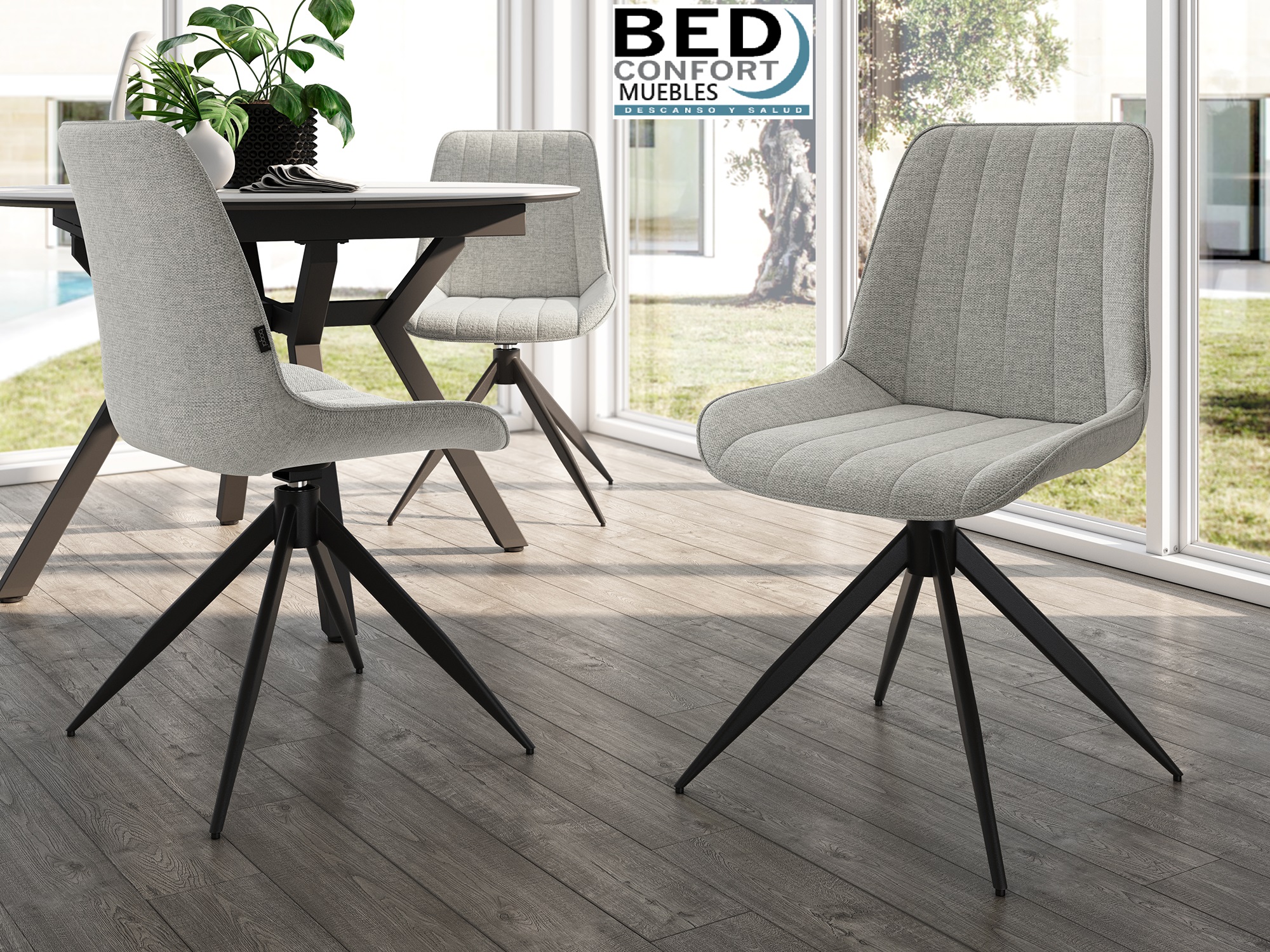 Silla giratoria 180º ,respaldo y asiento tapizado,Patas metálicas negras.