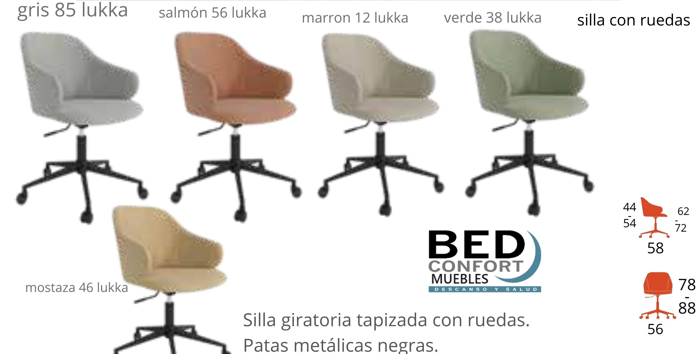 Silla giratoria tapizada Mostaza-Verde-Marrón-Salmón-Gris.