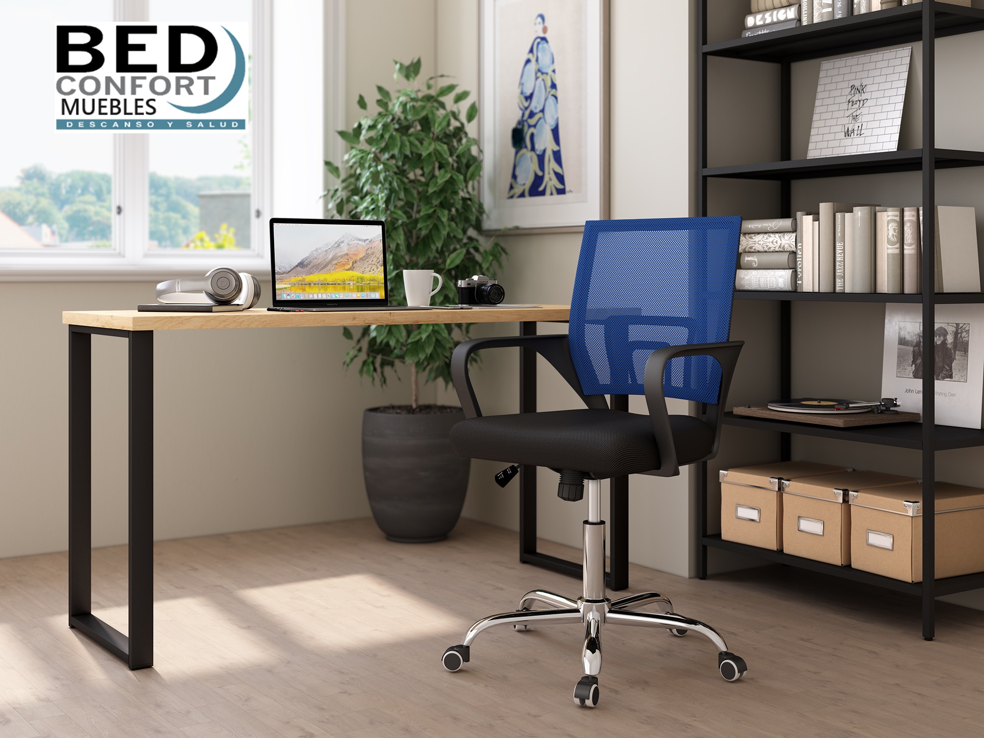 Silla estructura de polipropileno negro , respaldo y asiento de tela,patas cromadas con ruedas.