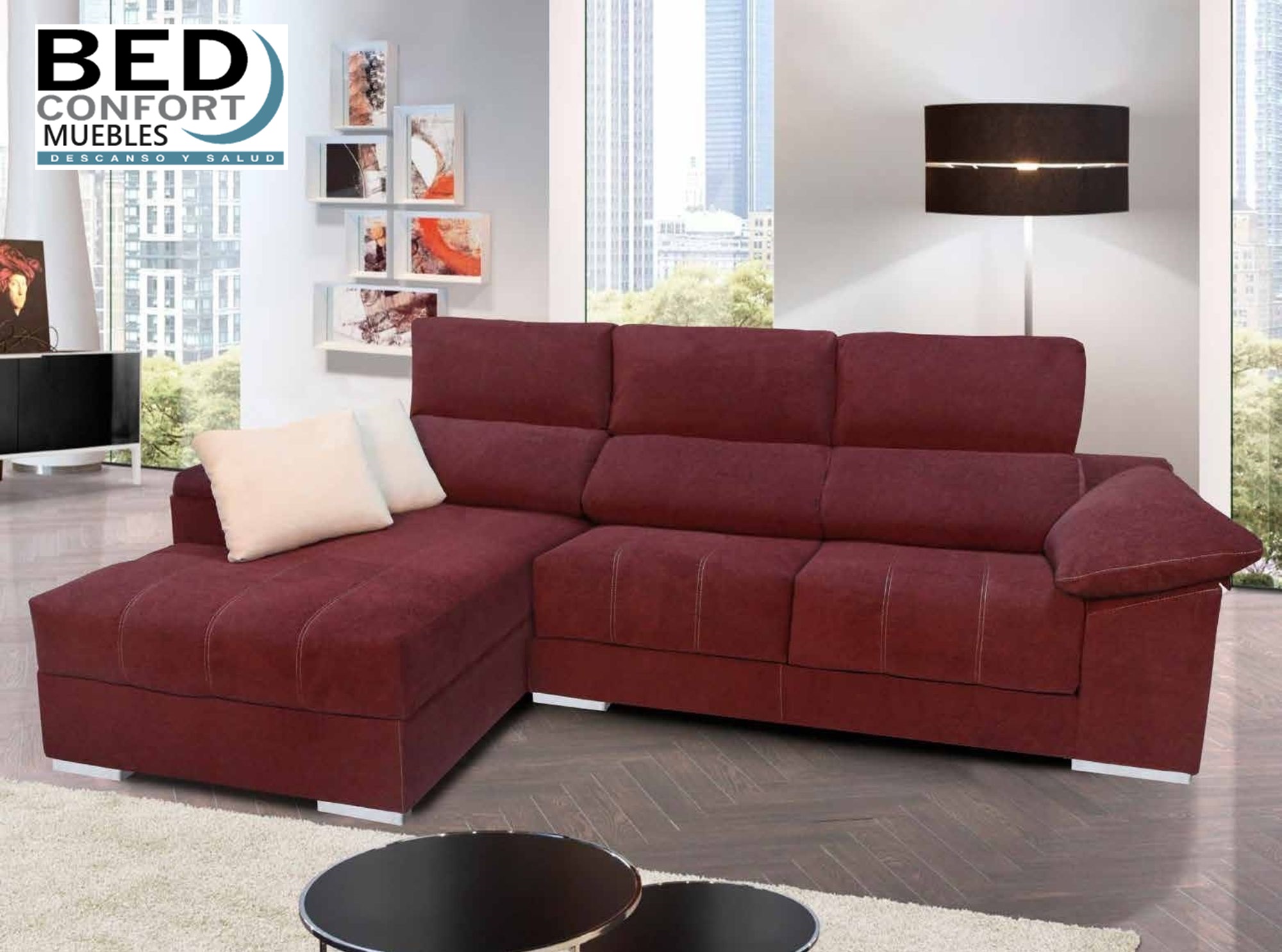 Sofá chaislongue 2,80m.  , asientos deslizantes y respaldo abatibles.