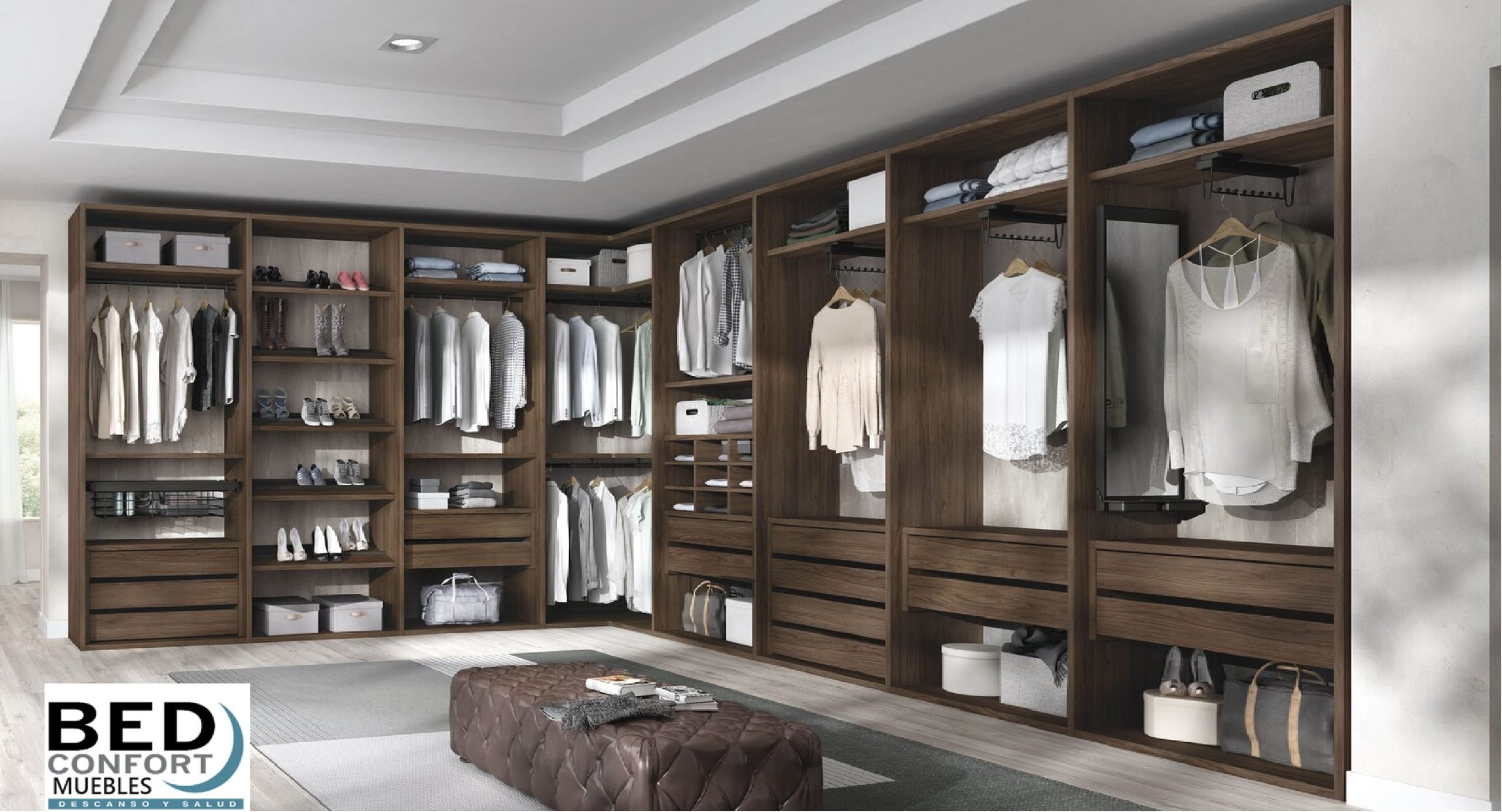 Vestidores, con o sin puertas, varios acabados con accesorios y diferentes medidas.
